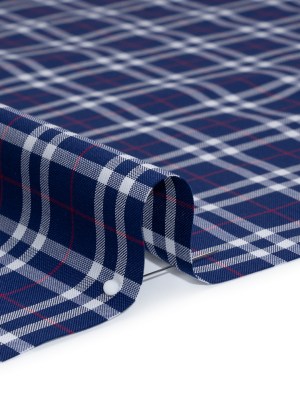 Cotton Shirting – Blue, White and Red Plaid – Deadstock