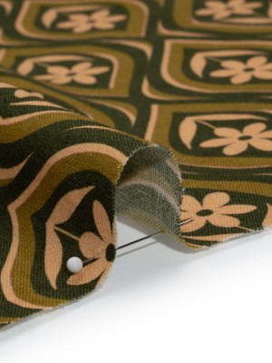 Linen and Rayon Woven – Olive, Hunter Green, and Beige Floral Ogees – Woodland Blooms Print – Mood Exclusive Acadia Collection