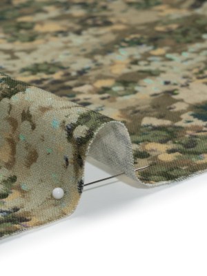Linen and Rayon Woven – Olive, Green and Beige Abstract Dots – Forest Lookout Print – Mood Exclusive Acadia Collection
