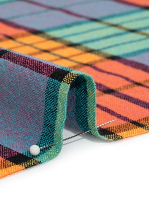 Orange, Green and Blue Plaid Homespun Cotton and Polyester Woven