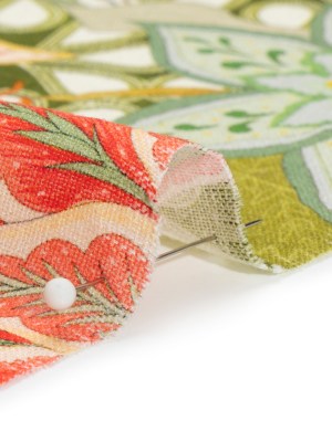 Linen and Rayon Woven – Orange and Pink Floral Paisley Stripe – Mood Exclusive Eos and Flora Print