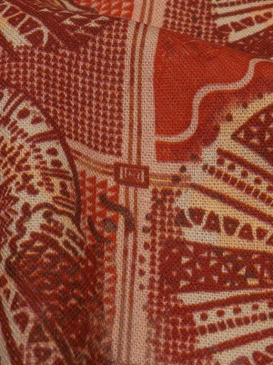 Linen and Rayon Woven – White and Orange Paisley and Chevron – Well Travelled Trails Print – Mood Exclusive Rockland Collection