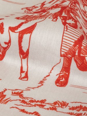 Cherry Tomato and White Classic Toile de Jouy Mercerized Organic Egyptian Cotton Shirting