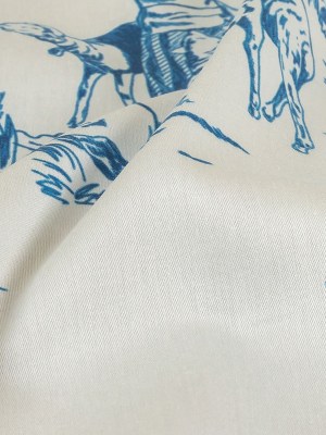Cobalt and White Classic Toile de Jouy Mercerized Organic Egyptian Cotton Shirting