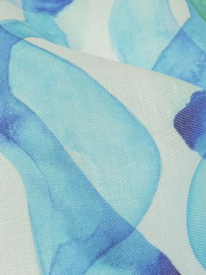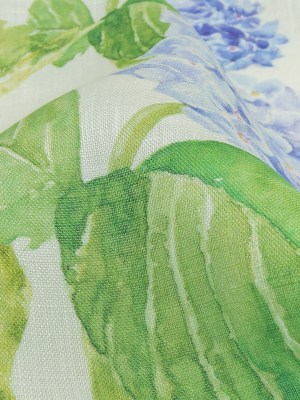 Blue, Green and White Hydrangeas Medium Weight Linen Woven