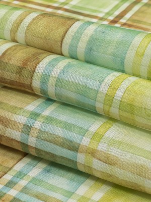 Yellow, Blue and Brown Watercolor Plaid Medium Weight Linen Woven