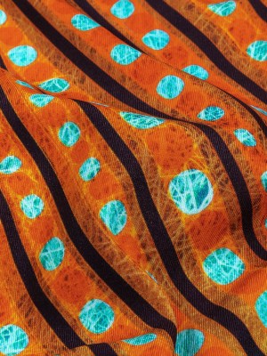 Orange, Espresso and Teal Art Deco Feathers UV Protective Compression Swimwear Tricot with Aloe Vera Microcapsules