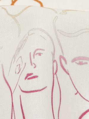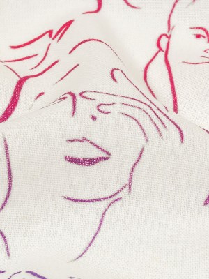 Linen and Rayon Woven – Pink, White and Orange Faces and Hands – Language of Love Print – Mood Exclusive Pride Collection