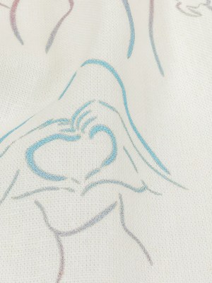 Linen and Rayon Woven – Pink, White and Blue Faces and Hands – Language of Love Print – Mood Exclusive Pride Collection