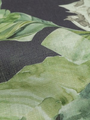 Green and Navy Succulent Leaves Medium Weight Linen Woven