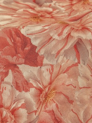 Peach, Red and White Floral Stretch Linen and Rayon Woven