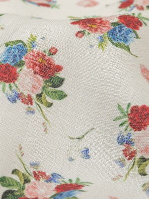 Pink, Blue and White Perfect Posies Medium Weight Linen Woven