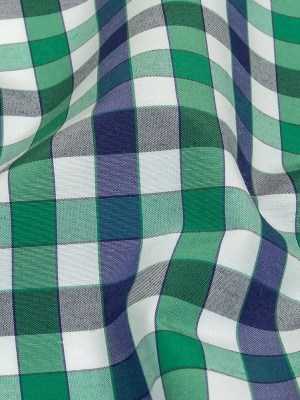 Evergreen and White Checkered Cotton and Polyester Shirting