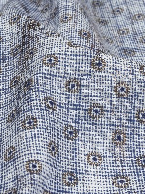 Brown and Blue Flowers and Dots Cotton and Polyester Shirting with Distressed Foil Topcoat