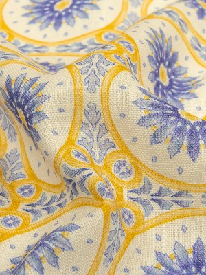 Viscose and Linen Woven Print – Violet Storm and Yellow Floral Tiles – Mood Exclusive Sao Bento