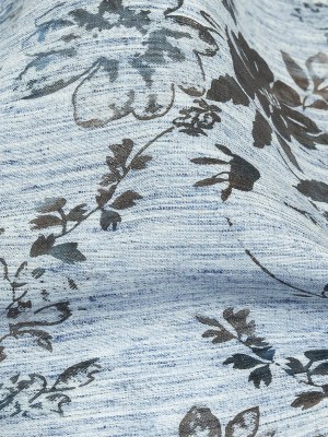 Soft Blue and Gunmetal Foiled Flowers Striated Stretch Cotton Woven