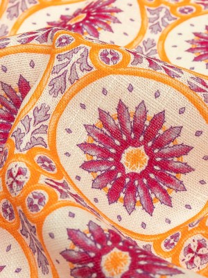 Viscose and Linen Woven Print – Magenta and Orange Floral Tiles – Mood Exclusive Sao Bento