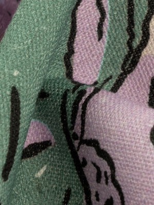 Linen and Rayon Woven – Purple and Green Figures and Doodles – Serene Souls Print – Mood Exclusive Wisteria Collection