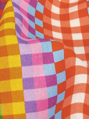 Linen and Rayon Woven – Rainbow Checkers – Picnic Patisserie Print – Mood Exclusive Sugar Collection