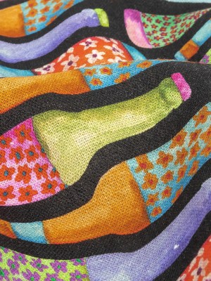 Linen and Rayon Woven – Rainbow Bottles on Black – Pop Bottle Parade Print – Mood Exclusive Sugar Collection