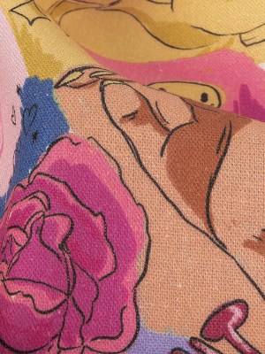 Linen and Rayon Woven – Rainbow Self Care Illustrations – Eating Bon Bons Print – Mood Exclusive Sugar Collection