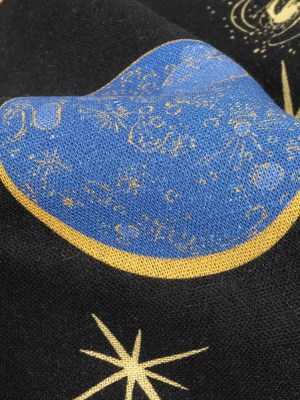 Linen and Rayon Woven – Black, Pink and Blue Astronauts in Space – Sweet Dreams Print – Mood Exclusive Sugar Collection
