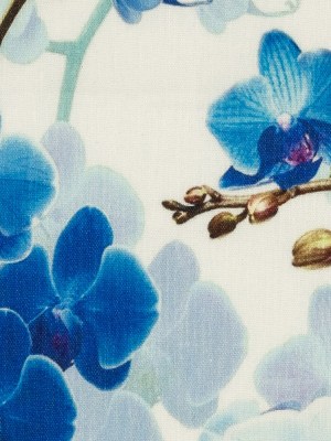 Tilted Blue Orchids and Lily White Printed Stretch Linen and Rayon Woven