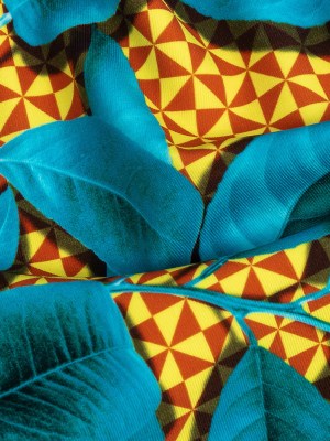 Compression Swimwear Tricot, UV Protective with Aloe Vera Microcapsules – Blue Leaves and Yellow Geometric – Caye Collection