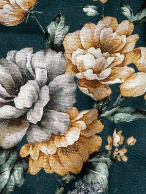 Linen and Rayon Woven – Teal and Orange Floral – Peony Prowess Print – Mood Exclusive Tumunyana Collection
