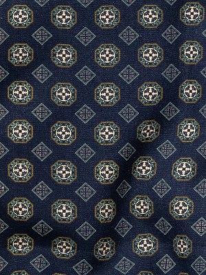 Linen and Rayon Woven – Navy Little Medallions – Motley Mosaic Print – Mood Exclusive Tumunyana Collection