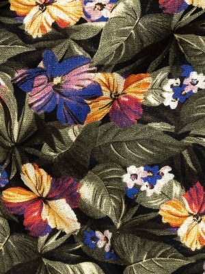 Linen and Rayon Woven – Green and Blue Tropical Floral – Virescent Vignette Print – Mood Exclusive Tumunyana Collection
