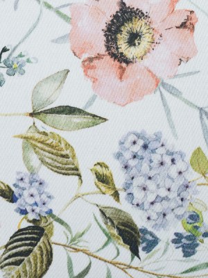 Stretch Cotton Sateen – White Floral Border – La Marche des Fleurs Print – Mood Exclusive Jacques Collection