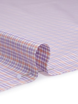 Cotton Twill Shirting – Light Purple, Peachy Orange and White Checks – Designer Deadstock