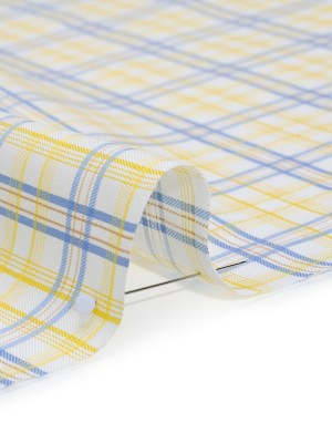 Cotton Twill Shirting – Sky Blue, Sunshine Yellow and White Plaid – Deadstock