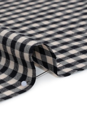 Brushed Cotton Twill Shirting Flannel – Black and Off White Checks – Designer Deadstock