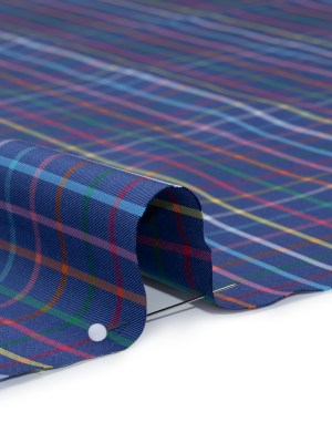 Cotton Twill Shirting – Blue and Rainbow Windowpane Checks – Deadstock