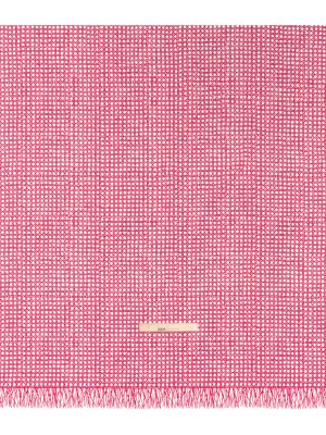 Textured Stretch Cotton Basketweave Panel by Trina Turk – Hot Pink and White Circle Grid and Printed Fringe Border – Designer Deadstock