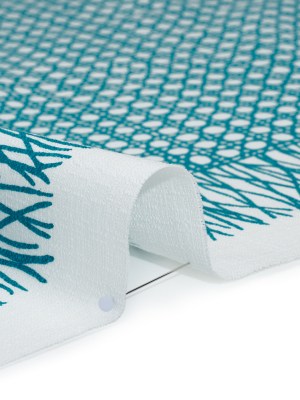 Textured Stretch Cotton Basketweave Panel by Trina Turk – Green Blue and White Circle Grid and Printed Fringe Border – Designer Deadstock