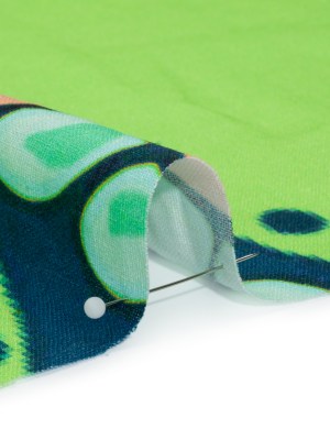 Linen and Rayon Woven Print – Green and Orange Large Pixelated Paisley – Mood Exclusive In the Limelight
