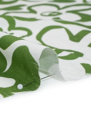 Linen and Rayon Woven – Green and Off White Flower Doodles – Mood Exclusive Sweet Scribbles Print