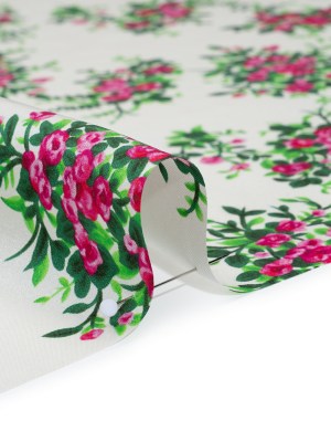 China Silk/Silk Habotai Print Made in Italy – Pink, Green and Ivory Flower Bunches – Deadstock