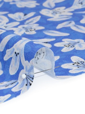 Linen-Rayon Woven – Blue Floral – Daybreak Bloom Print – Mood Exclusive Chariot Collection
