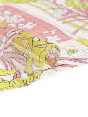 Pink, Lime and White Floral Patchwork Metallic Pinstriped Silk Chiffon