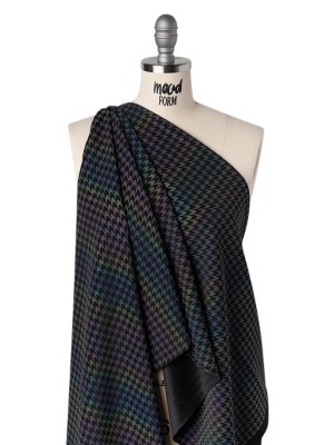 Reflective Print Spandex Knit with 4-Way Stretch – Rainbow and Black Houndstooth
