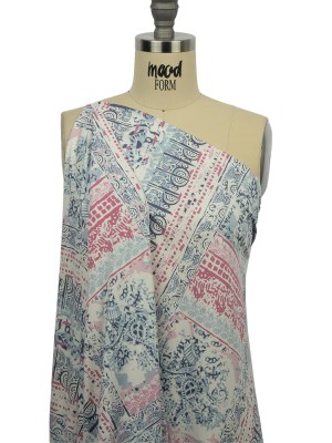 Blue Gray, Pink and White Abstract Patchwork Stretch Polyester ITY Jersey Panel