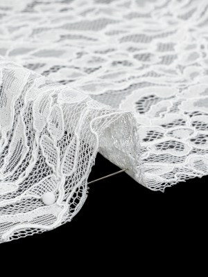 Stretch Raschel Lace with Finished Scalloped Edges – Luminous Silver and Gray Flowers, Leaves and Swirls – Crina Collection