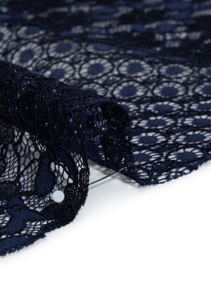 Rayon and Nylon Corded Lace with Scalloped Finished Edges – Navy Blue Flower and Dot Stripes
