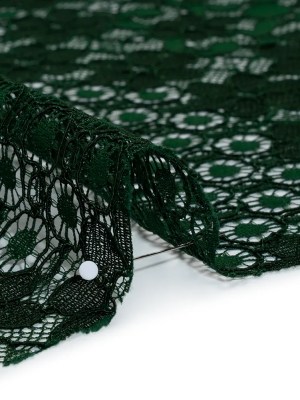 Rayon and Nylon Corded Lace with Scalloped Finished Edges – Hunter Green Flower and Dot Stripes