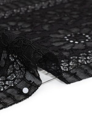 Corded Lace with Finished Scalloped Edges – Black Bold Florals