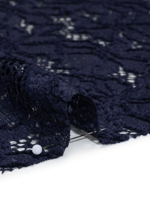Stretch Chenille Corded Lace – Navy Floral – Deadstock